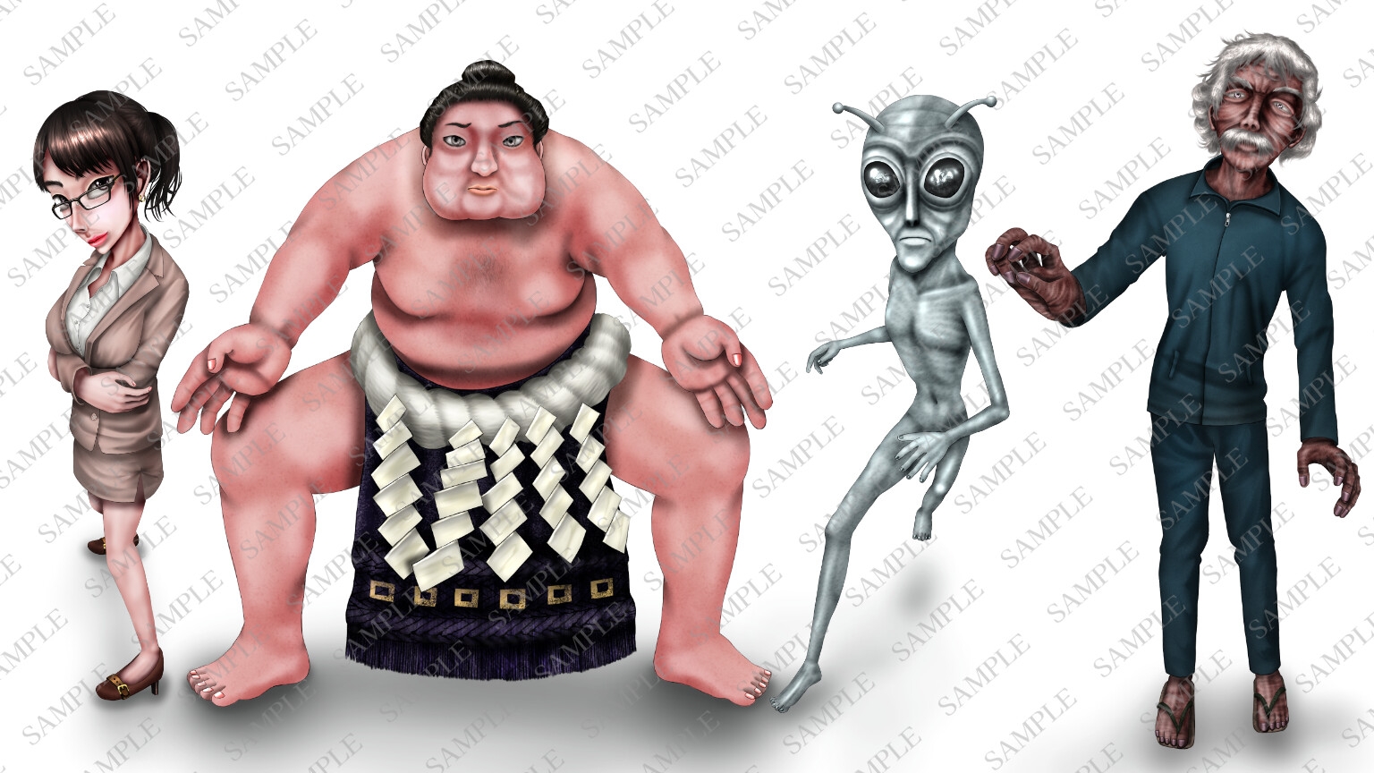 敵グラフィックや、立ち絵などに使える人物素材集です。