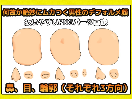 「男性顔 手書きデフォルメ」の商用利用可能な素材画像パーツです。