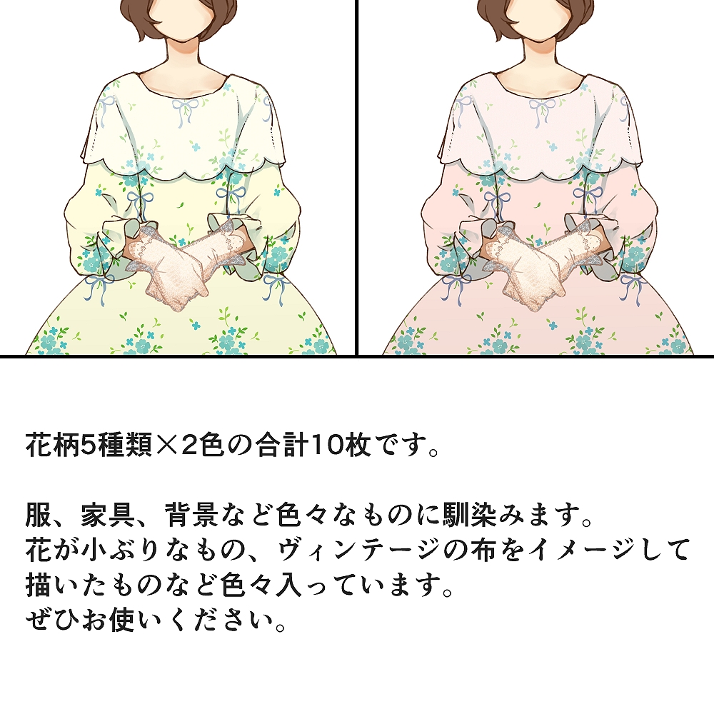 ロマンス系の花柄その4、5種類×2色の合計10枚です。