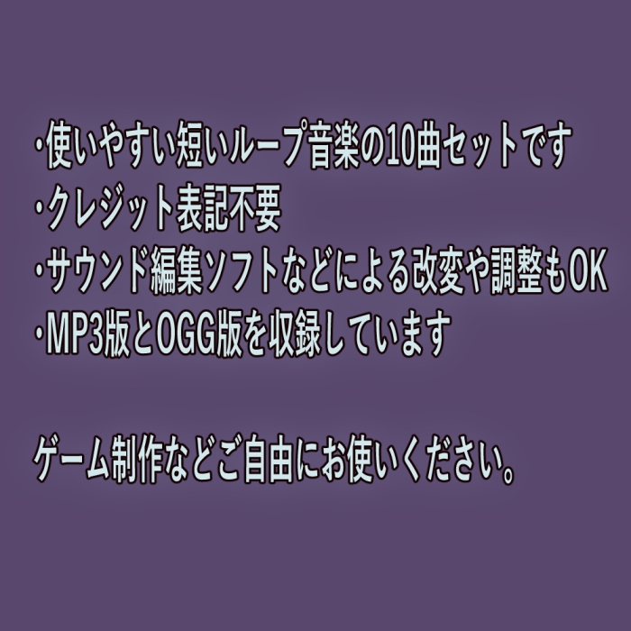 ゲームに使いやすいよう短いループ曲ばかりです。