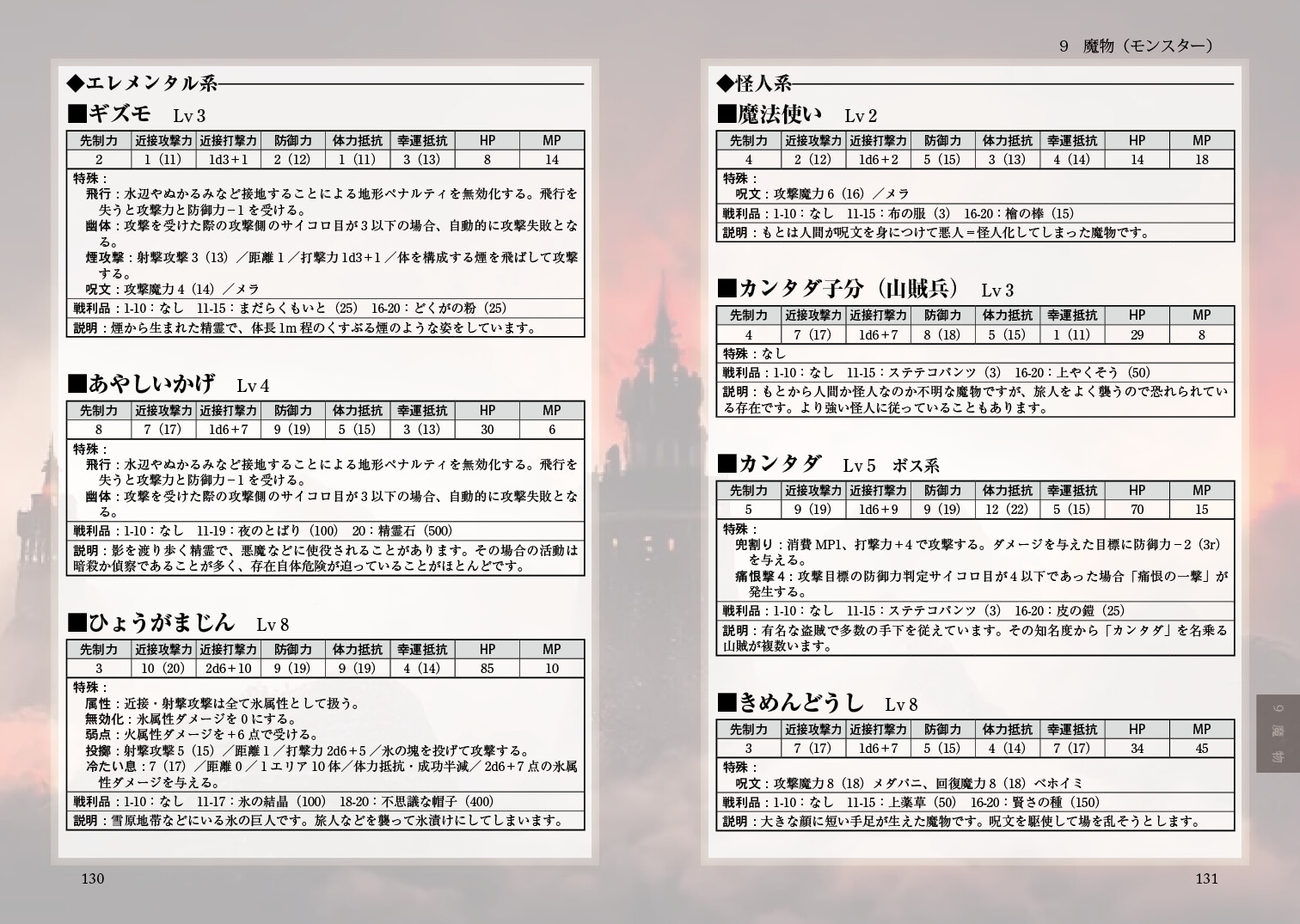 ルール本文、シナリオ2本、キャラクターシート、オンラインセッション用の各種データ