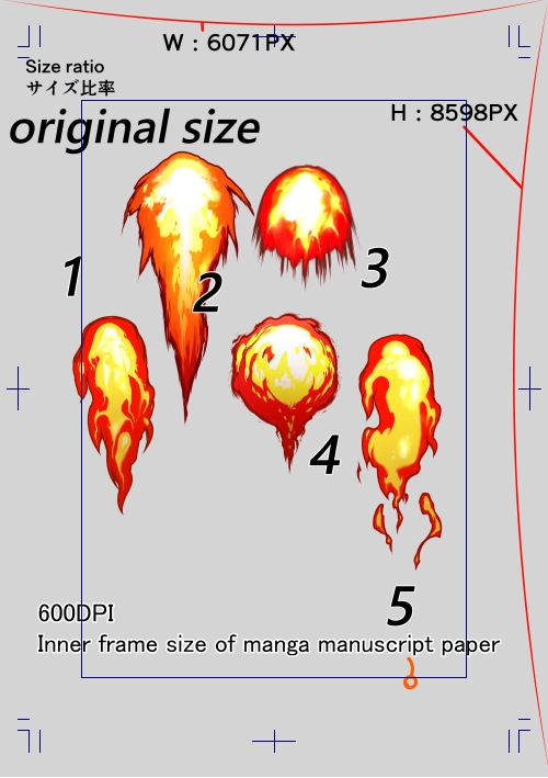 クリップスタジオで使える、ファイヤーボールの画像素材カラー。