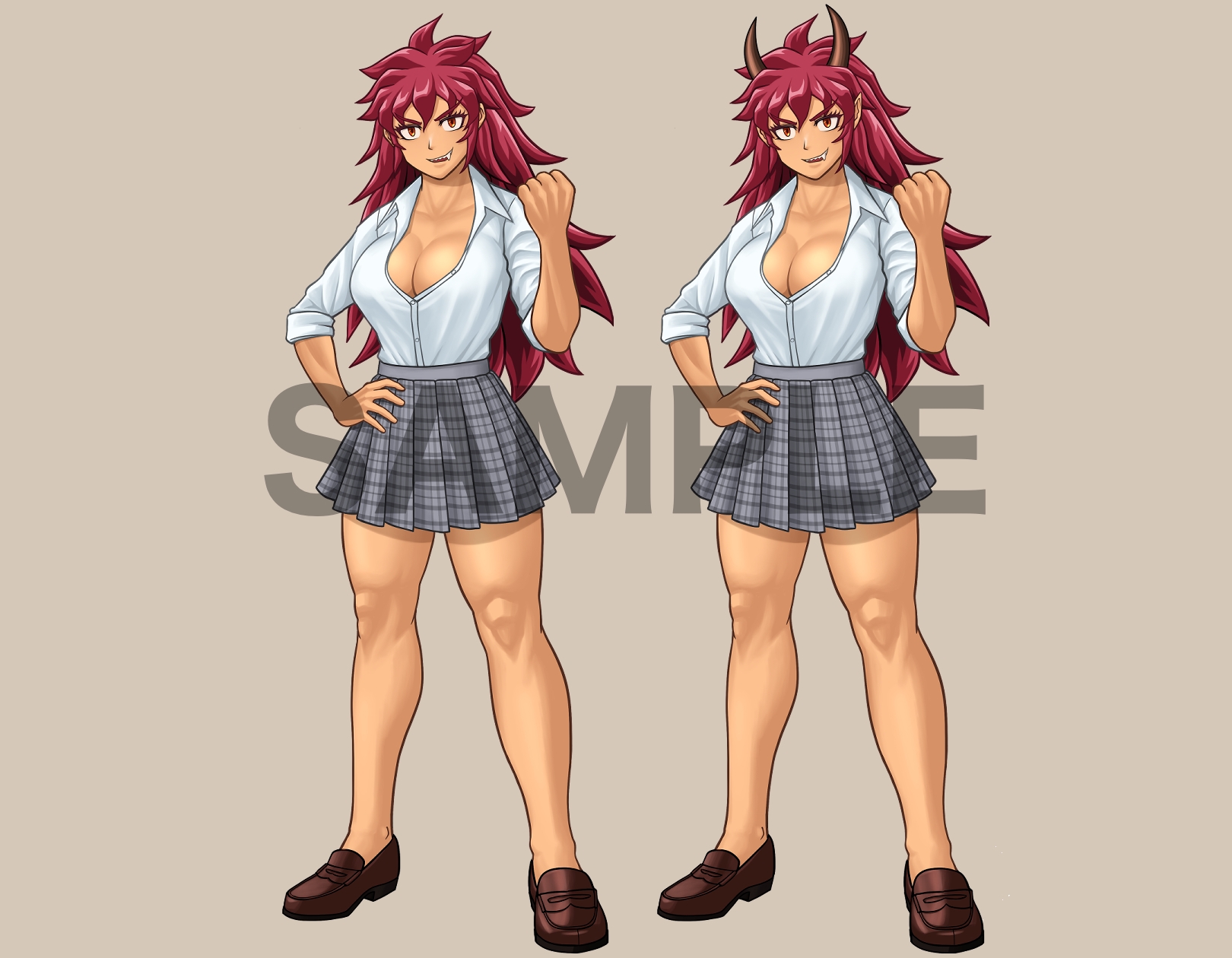 ゲームや動画などで使える立ち絵素材、パワータイプの女子高生、女番長、脳筋キャラ、C05