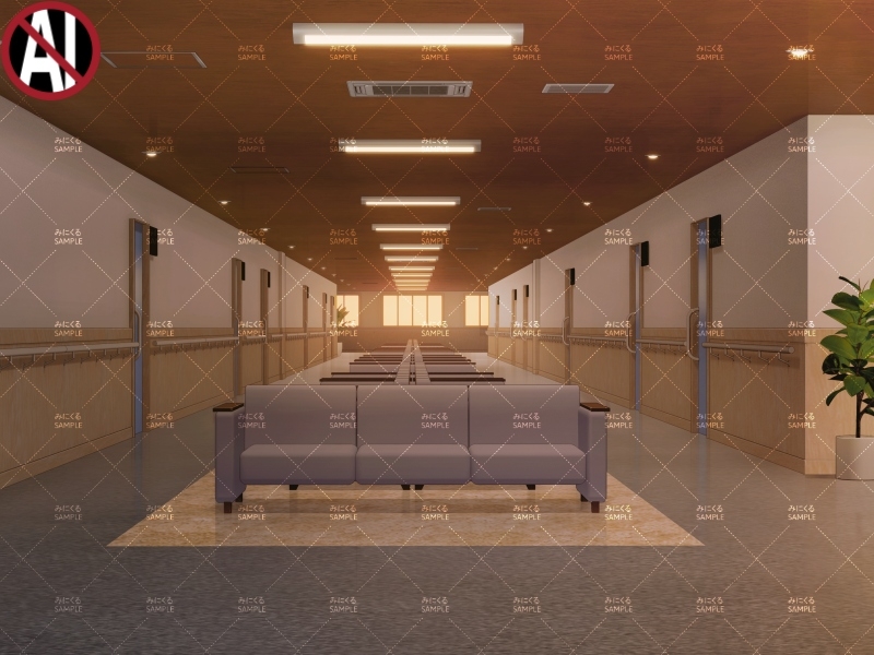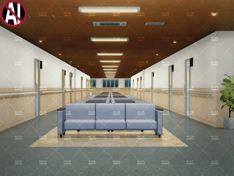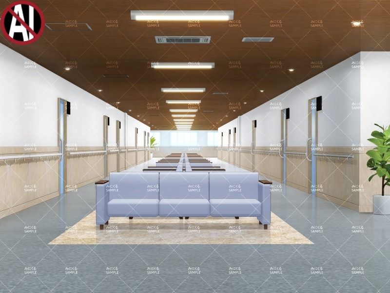 病院外観、病棟の廊下、外来の廊下をご用意いたしました。