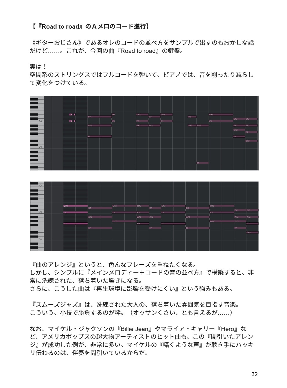 少なくとも、冊子にキャプチャーされてるピアノロールを《数枚》真似すれば、ジャズになるから。余裕。