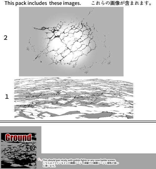 戦闘シーンなどに使える荒れた地面の画像が2枚入っています。
