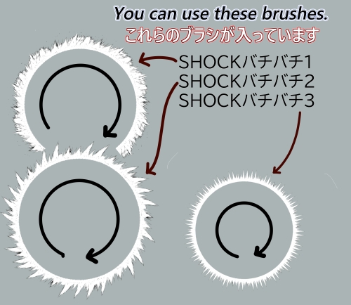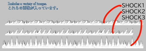 SHOCK EFFECTのブラシと画像が3パターンずつ入っています。