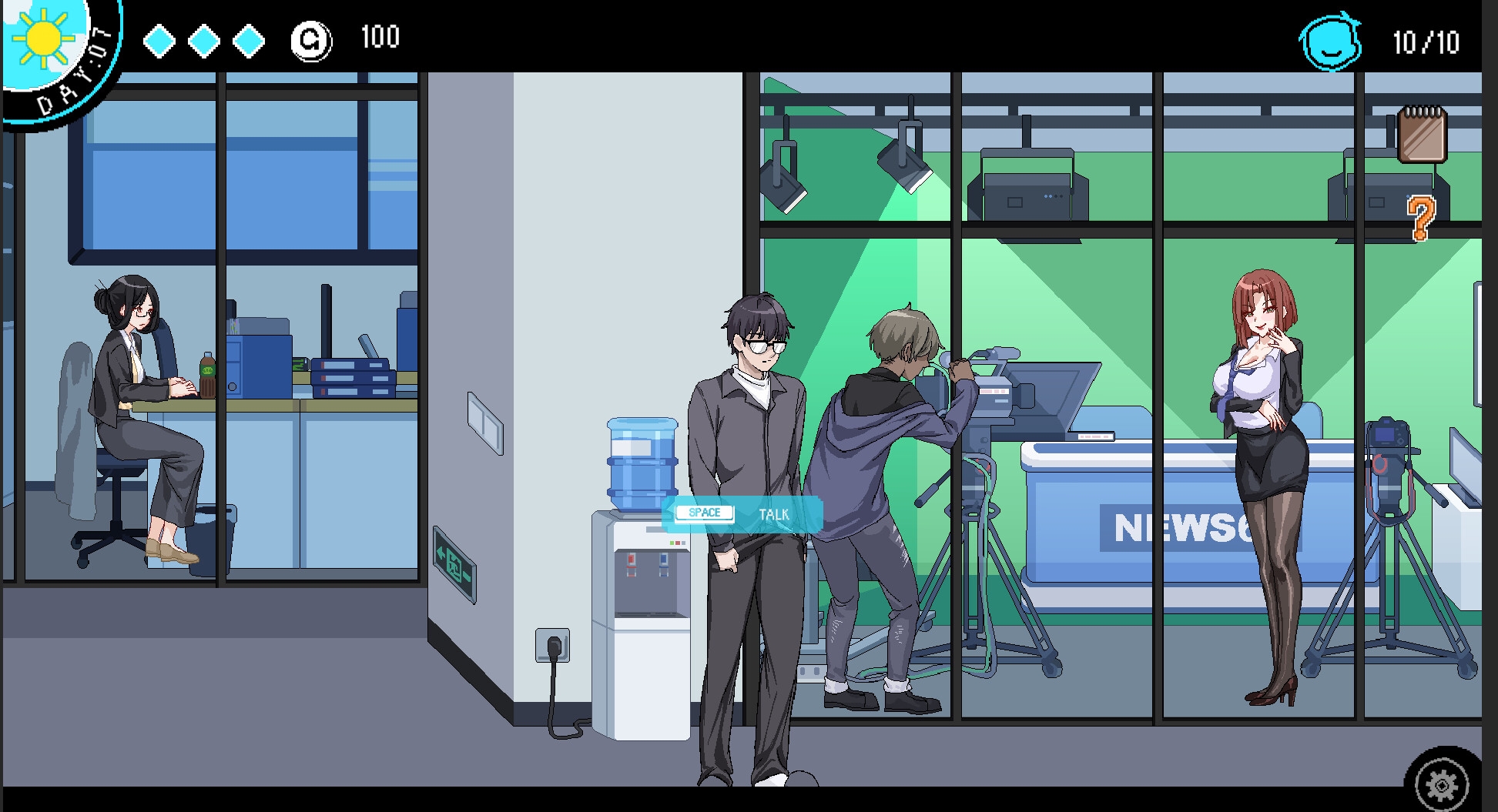 このシーンには約7人のNPCが登場し、新たな女性メインキャラクター「ユリカ」も加わります。彼女はプレイヤーがこれまでテレビ番組で目にしていたニュースキャスターです。