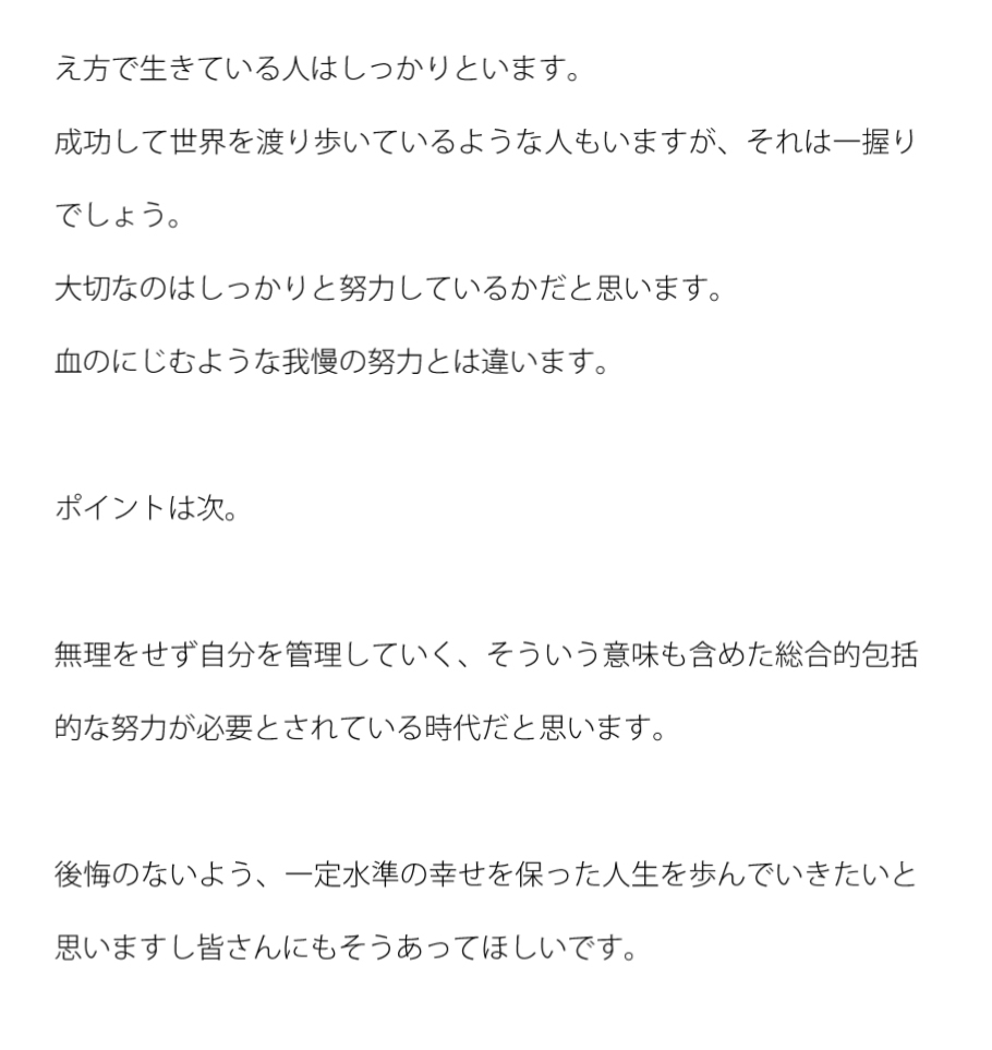 頑張らなければ残念になる、これはほぼ間違いない事実です。