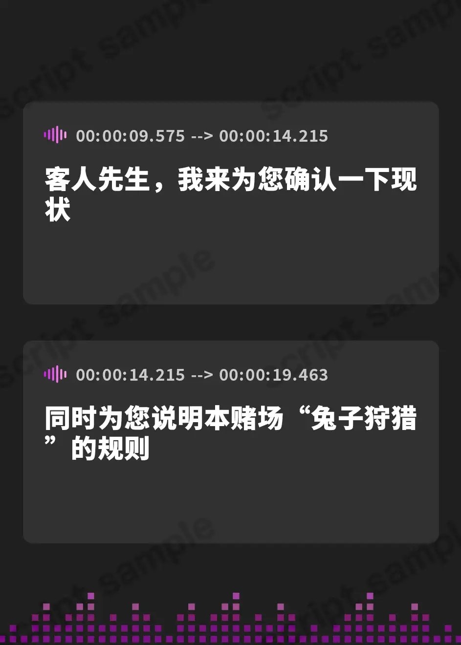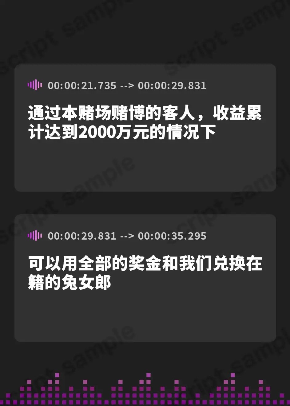 本カジノで勝ち金累計が2千万ドルに達したとき、その価値金すべてと好きなメス兎を交換、奴○として所有する事ができる違法カジノ特有の人身売買。