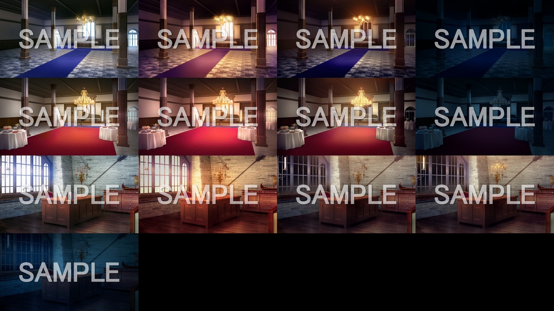 ファンタジー背景素材6点+時間差分を入れた、お得なおまとめパックです。