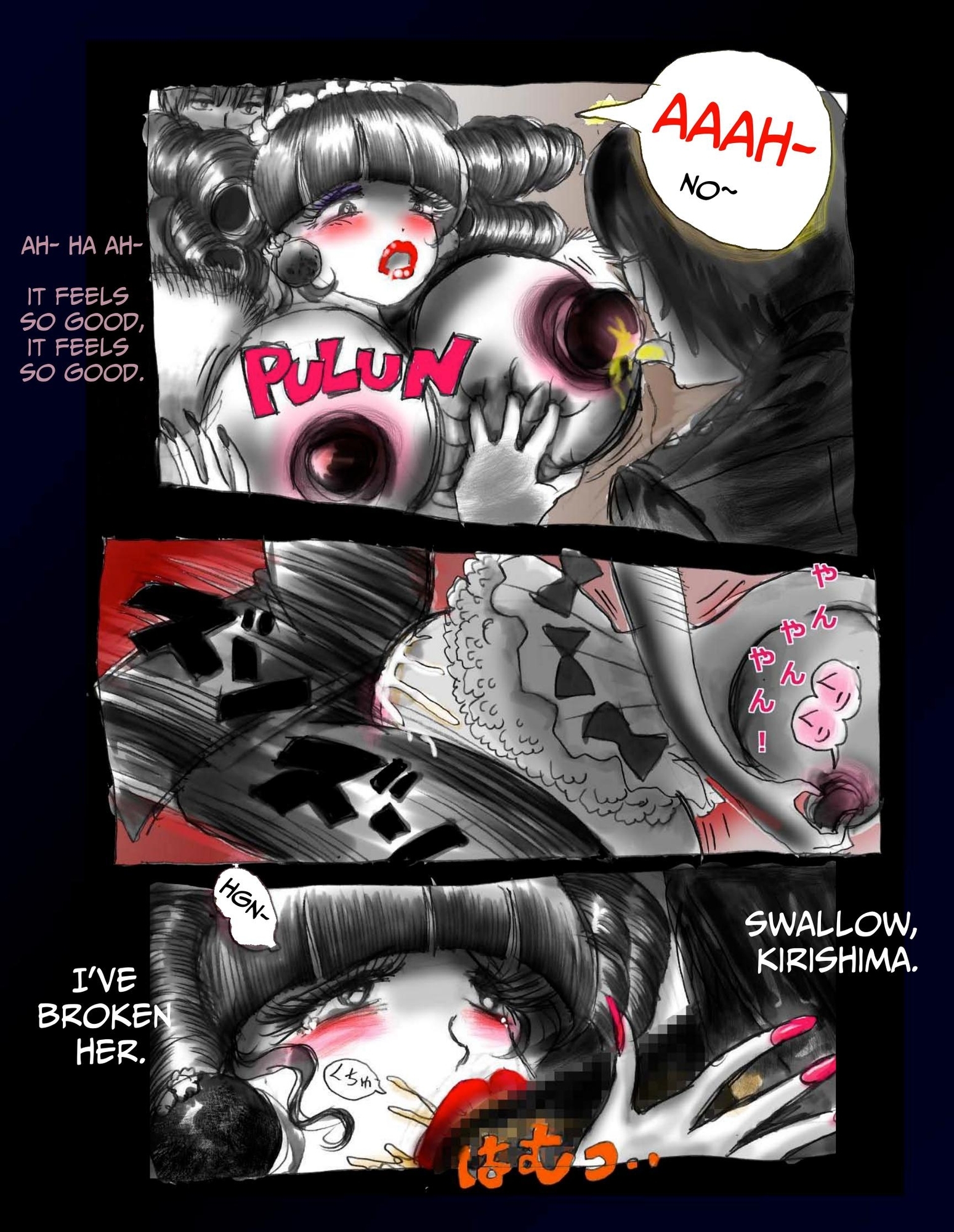 第五小隊隊長霧島は男を恥辱まみれのまま強○女体化するありとあらゆる装置が内臓された着衣型デバイス、通称「姦落のドレス」を任務中着せられる。一旦着用すれば「女」として堕ちるまで脱げない。部下の目の前で巨乳巨尻の女体化、お姫様ヘアー化、強○永久ケバメイク、性器搾取、睾丸イヤリング装着、部下によるレ○プ、ありとあらゆる女体化恥辱に晒され「男」霧島は崩壊していく。83ページ濃厚な100ショット。Milda7ワールドの十八番シーン満載の超お得な作品となりました。