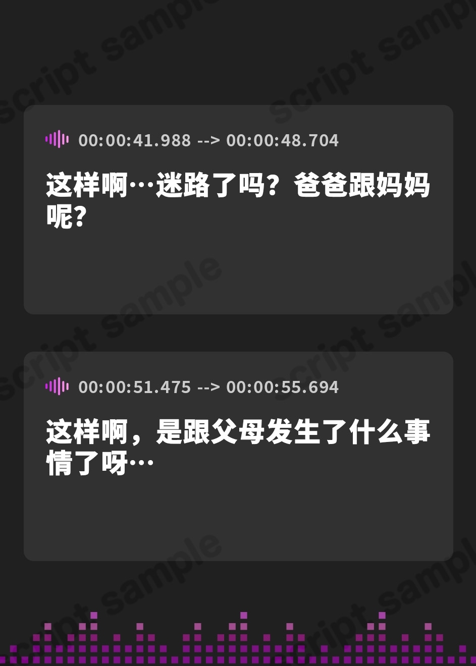 「ずっと泣いてたの? そう 迷子なの? お母さんお父さんは?」