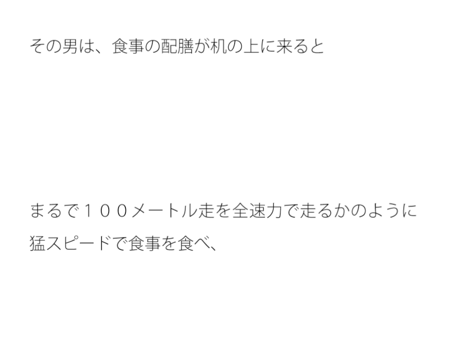 まるで100メートル走を全速力で走るかのように猛スピードで食事を食べ、