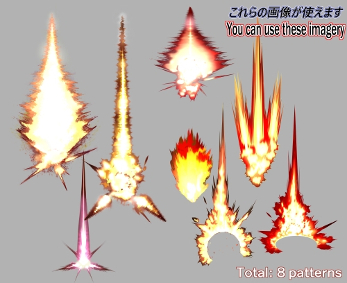 銃・マシンガン・大砲などの発砲エフェクトが8パターン入っています。