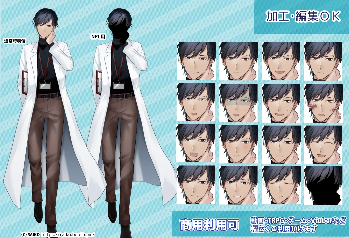 ・Vtuber用・配信アプリ用(使用時に[Illust:RAIKO URL:https://raiko.booth.pm/ ]をどこかにご記載頂ければ利用可能)
