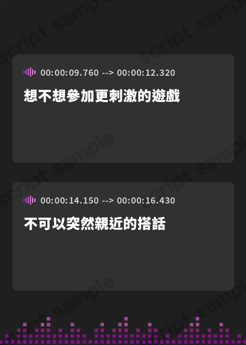【WAV】,【MP3】の2種類のファイル形式に対して、【SE音 有り】のみご用意しております。