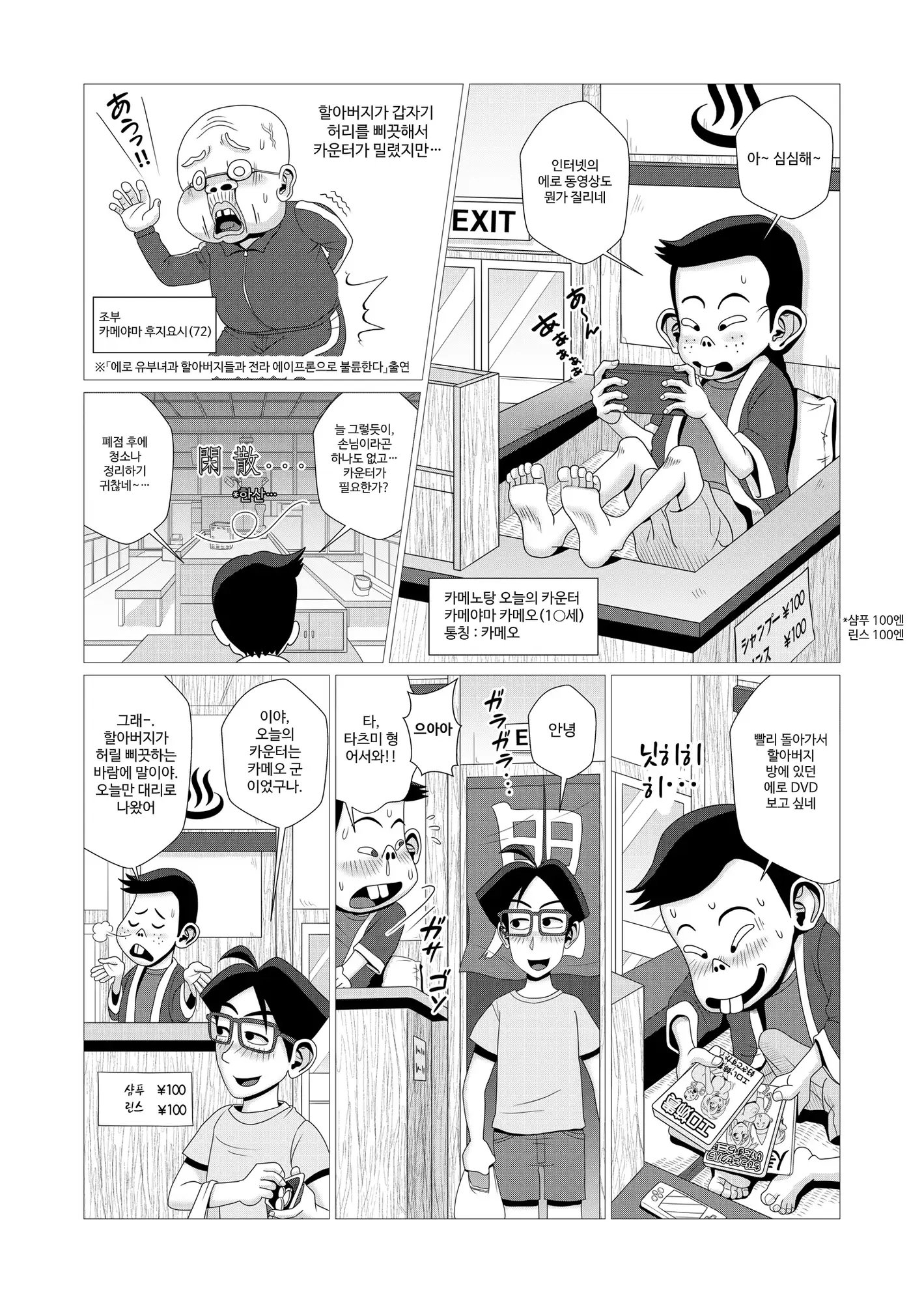 番台に座るのは、朝から晩までエロい事に興味津々で頭と身体が思春期真っ只中のカメオ君。