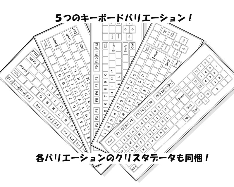 5種類のキーボードバリエーション画像と4つのパーツ画像PNGデータ