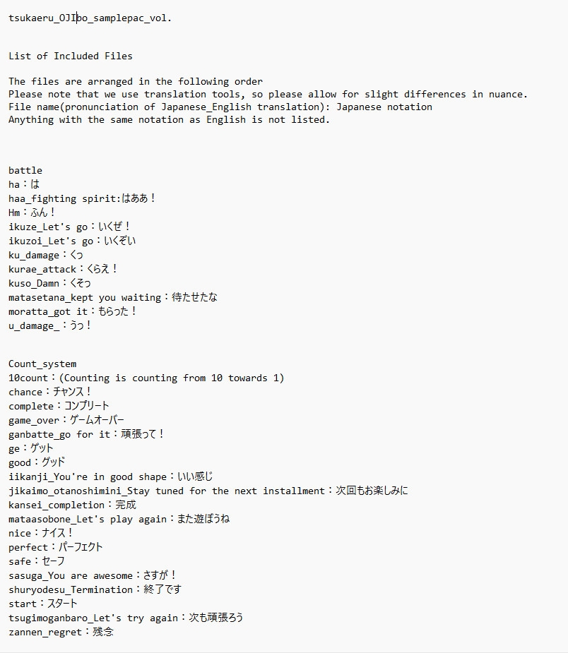 ファイル形式はwav(48kHz24bitモノラル),ogg,mp3の3種類です。