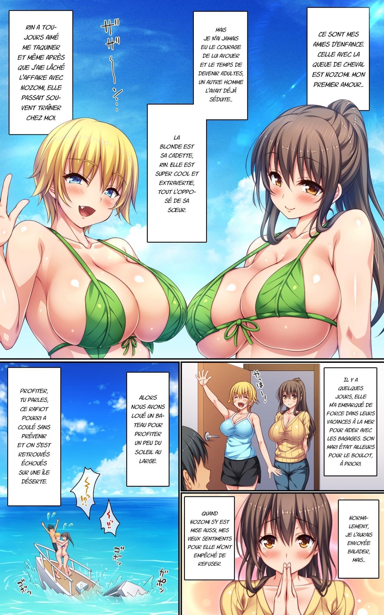 幼馴染の巨乳人妻姉妹と無人島に流れ着いた主人公。