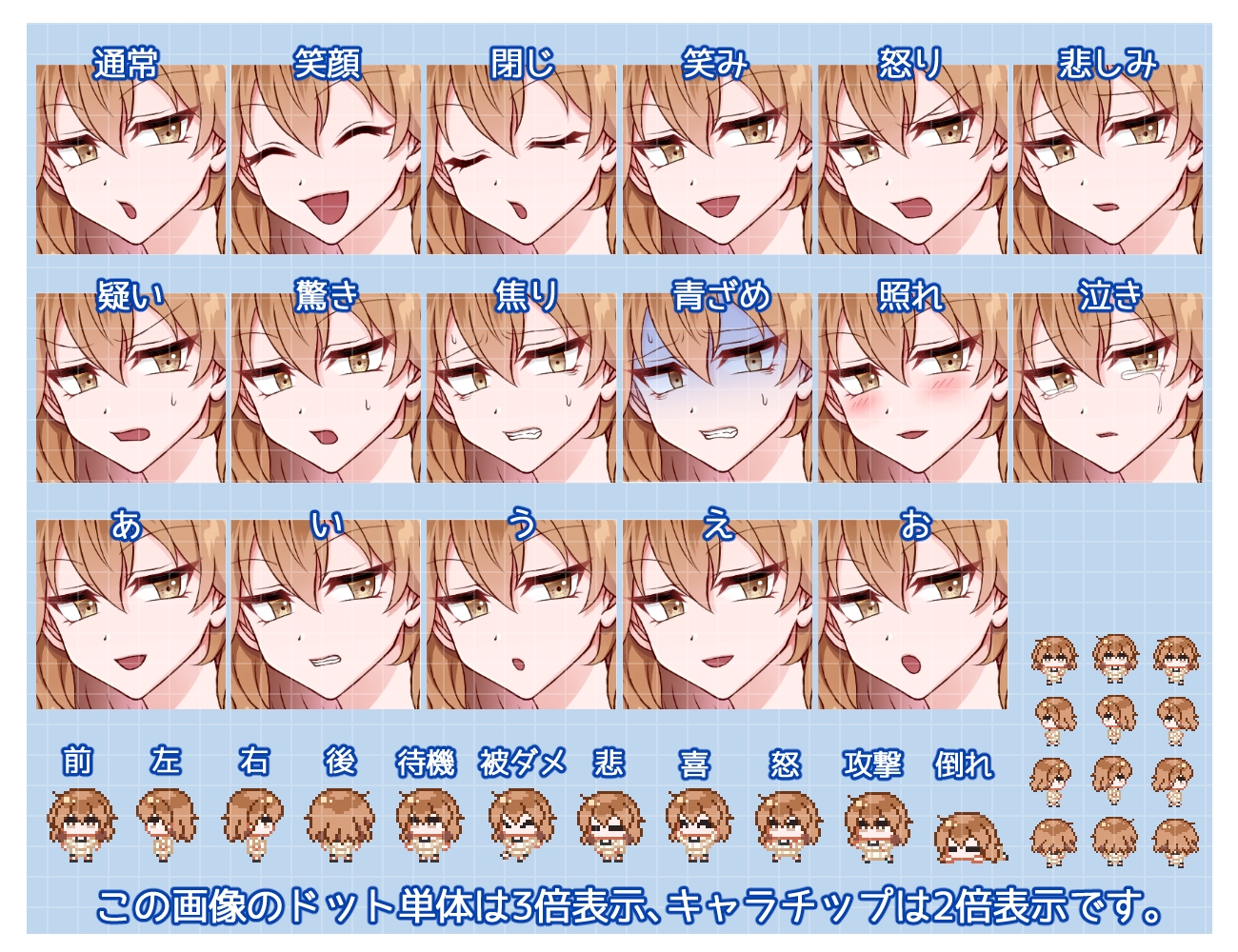 ・ドット(32×32px / 72dpi / 透過png / 11種)※歩行のみキャラチップ同梱/その他はアニメーション無しの各1枚のみ