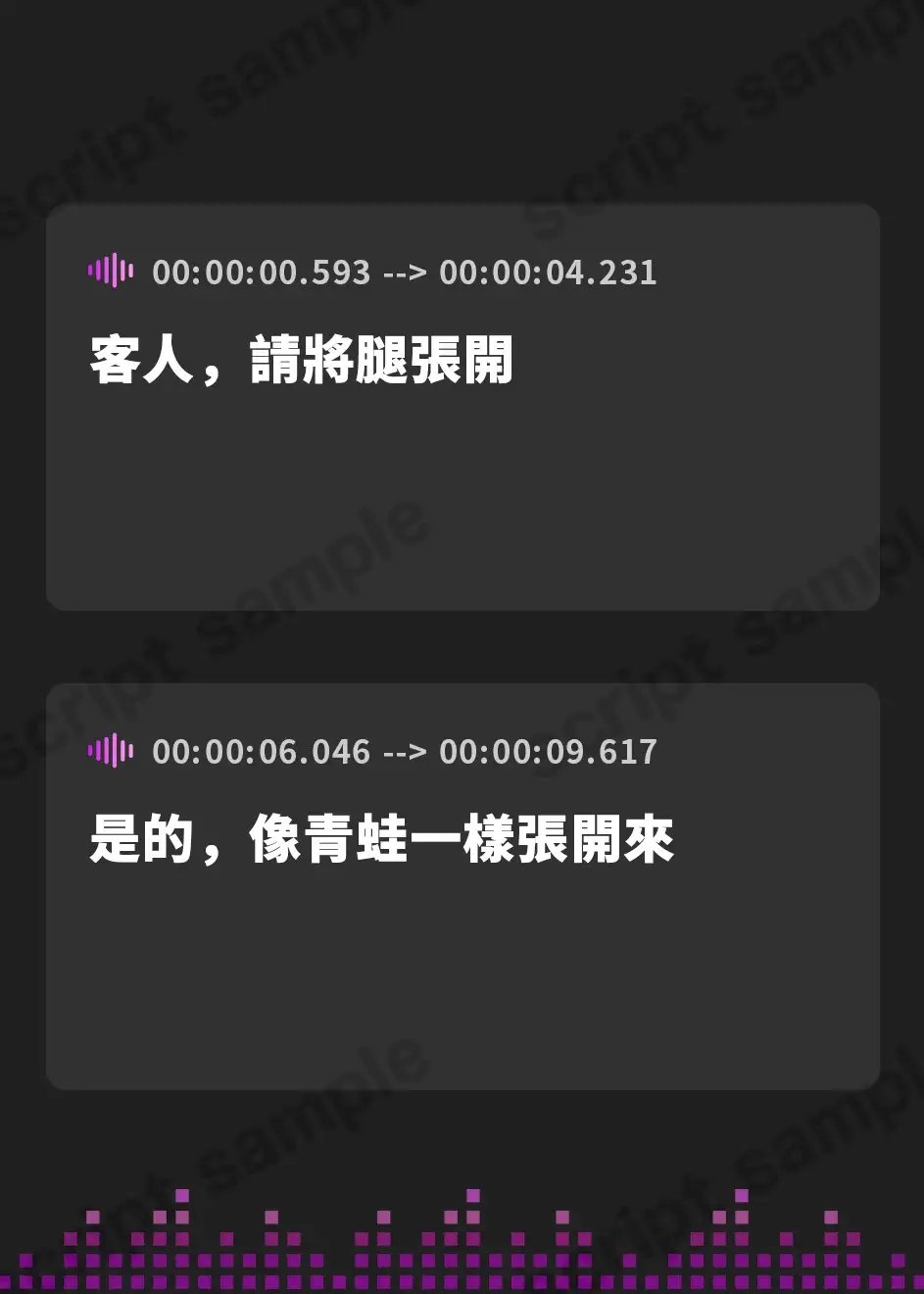 足を開いてくださいお客様、そう、カエルみたいに大きく……。