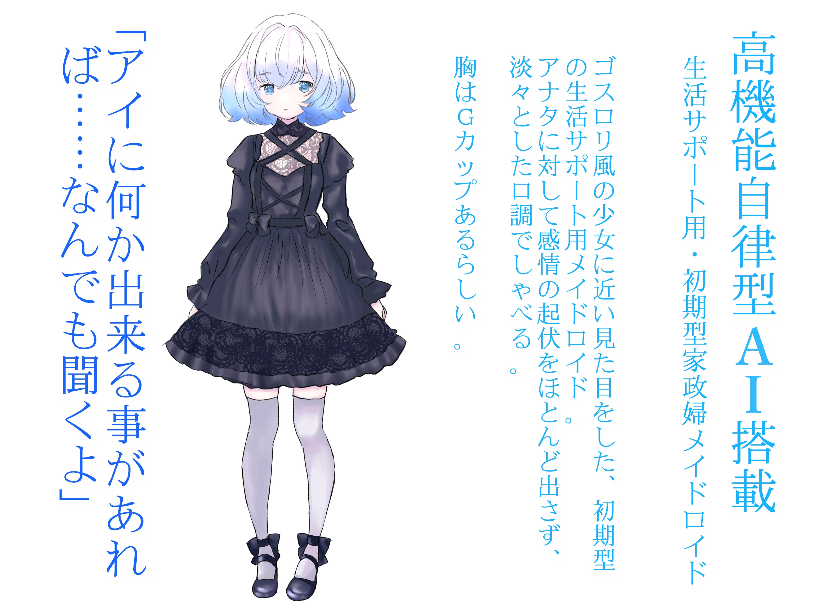 本来の用途はAIアシスタントとしてクラウドデータベースを利用しつつ、金銭管理や家事分担等々、身の回りの世話をしたりして生活の負担を和らげる為の手段として用いられる。……はずなのだが、使用者の間に広まっている噂では、性交用。つまりラブドールとしての機能も搭載しているらしい。