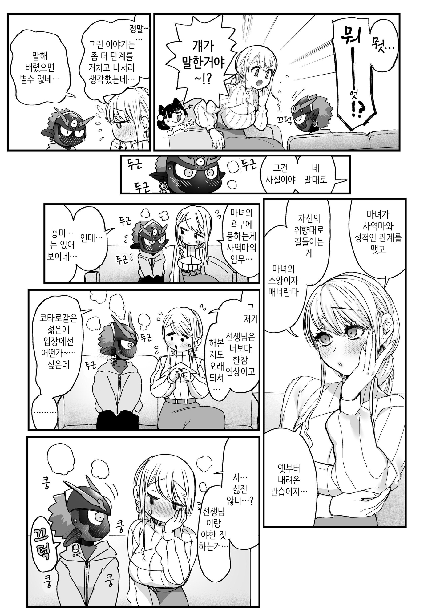 小太郎はある日「魔女を性的に満足させることが使い魔の仕事」と聞き、恐る恐る先生へ問うてみるとそれは本当だった