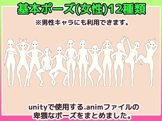VRM(vroid)などの人型3Dデータに使用できるユニティ用「卑猥な立ちポーズ(女性用)」のアニメーションファイル(.anim)