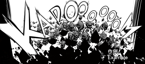 ●飛び散る瓦礫の方向に合わせて影も流れる。