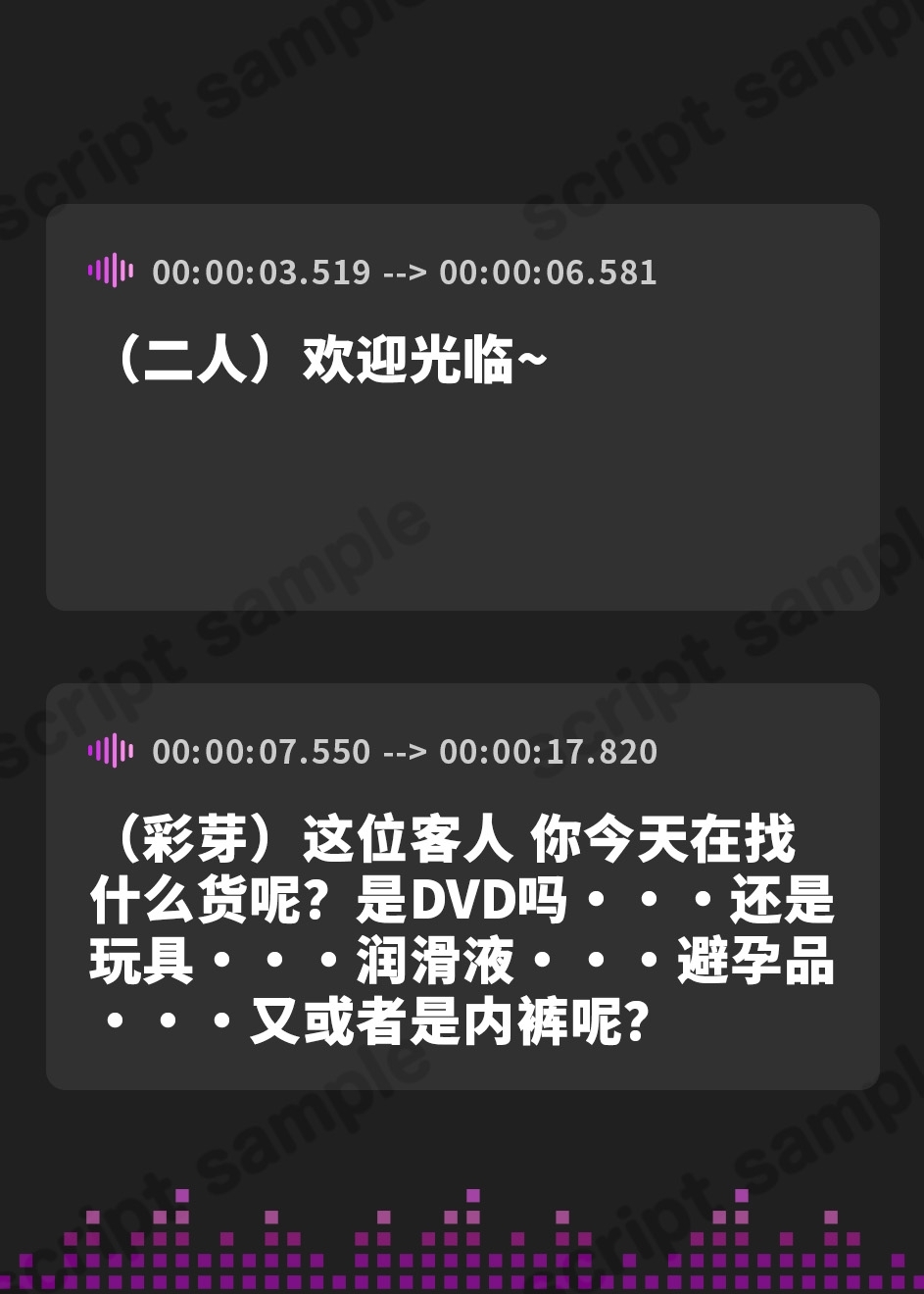 「お客様、本日は何かお探しですかっ♪ DVDでしょうか♪ オモチャでしょうか♪ ローションでしょうか♪ 避妊具でしょうか♪ それとも…下着でしょうか♪」
