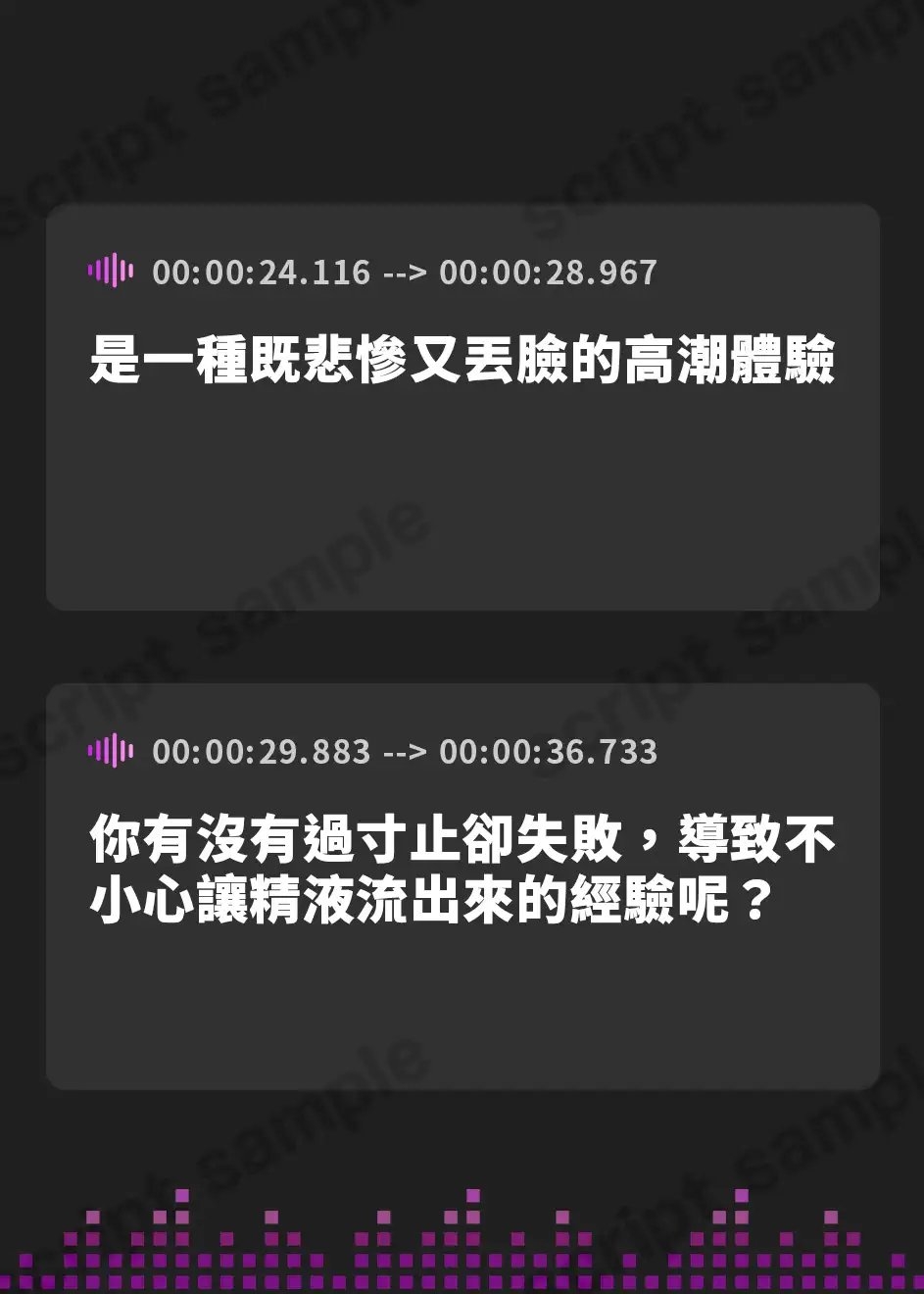 ルーインドオーガズム(台無し射精・お漏らし射精)、連続射精、強○オナニー、言葉責め、耳舐め、吐息責め、乳首責め、シコシコボイス