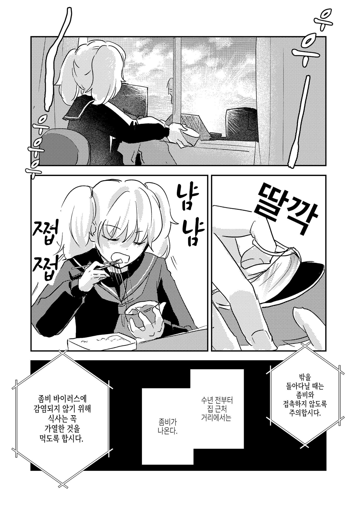生ものを食べるとゾンビになってしまうゾンビアポカリプス世界で女子高生が寿司を食べてゾンビになってしまう話。