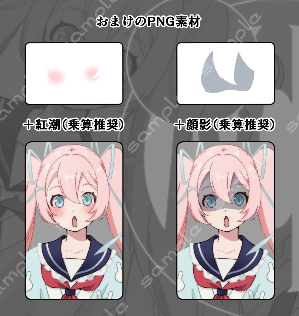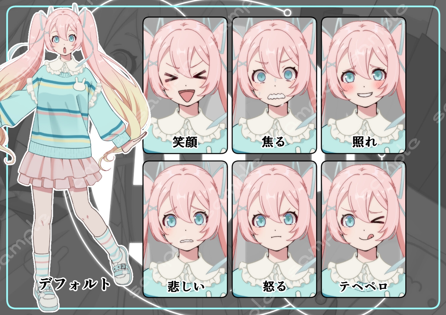 この立ち絵は【立ち絵素材_3(ピンク髪ツインテール女子高生全身、表情7種)→https://www.dlsite.com/home/work/=/product_id/RJ366240.html 】のリメイクになります。