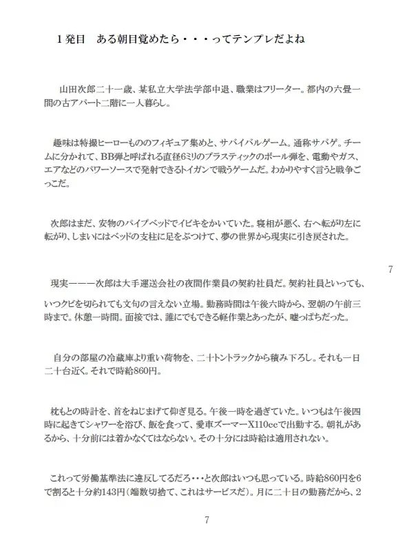 山田次郎21歳、契約社員。サバイバルゲームチーム「モーニング・フォッグ」のメンバーの一人。次郎はある朝目覚めると、街中をゾンビが徘徊していることに気がついた。それも電動ガンから発射されるBB弾で、ゾンビたちを倒せることにも・・・・・。その日から、山田次郎と「モーニング・フォッグ」とゾンビの戦いが始まった―――。