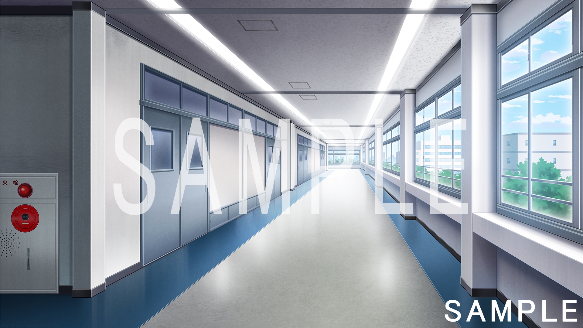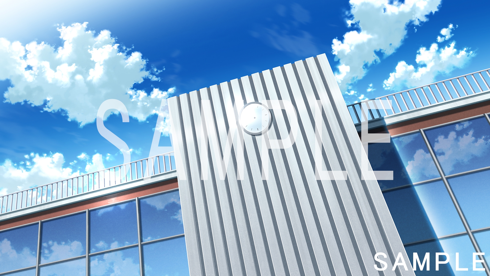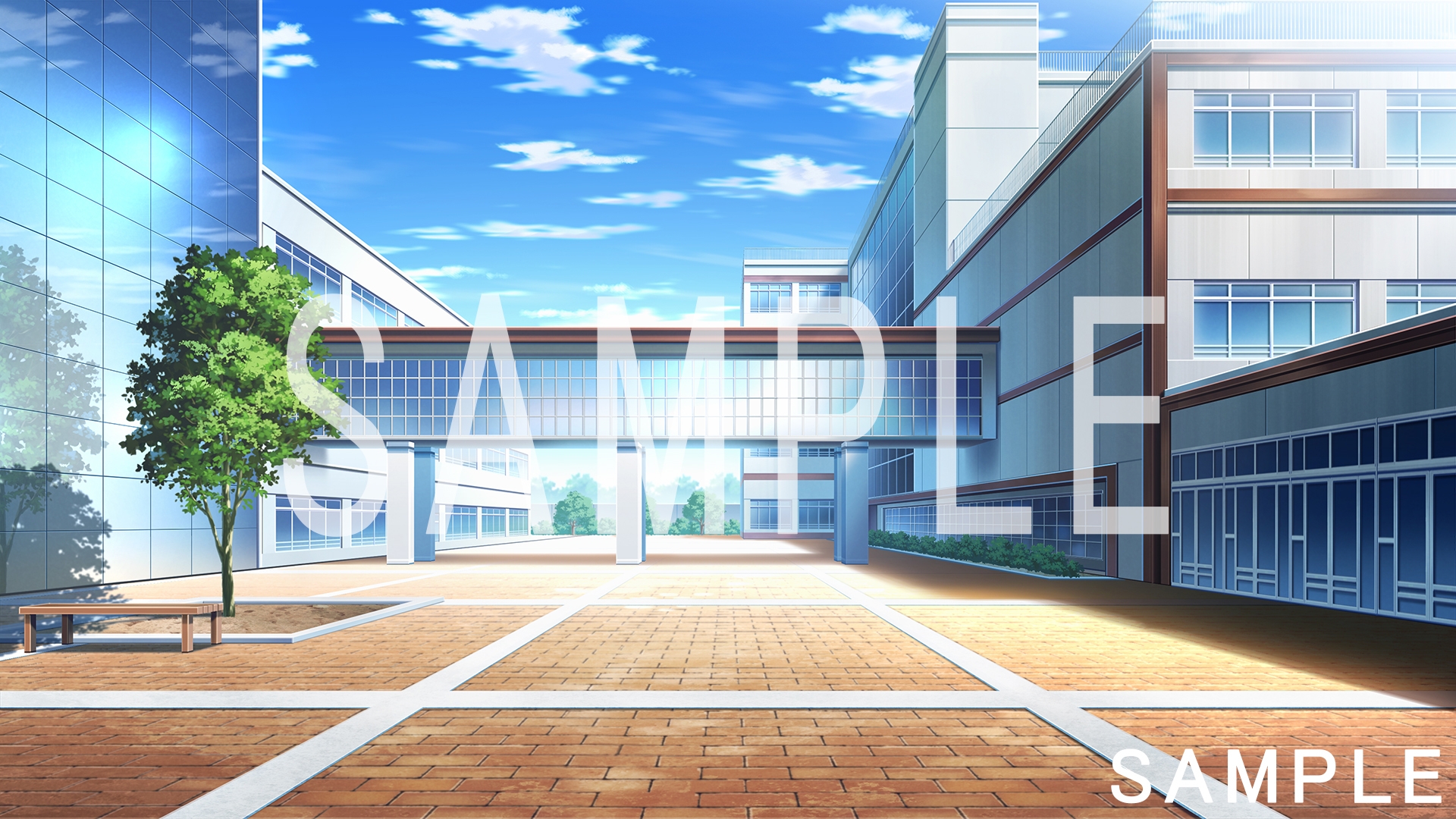 校門前/中庭/廊下/渡り廊下/屋上/校舎正面見上げ/自販機前/図書室/階段/空