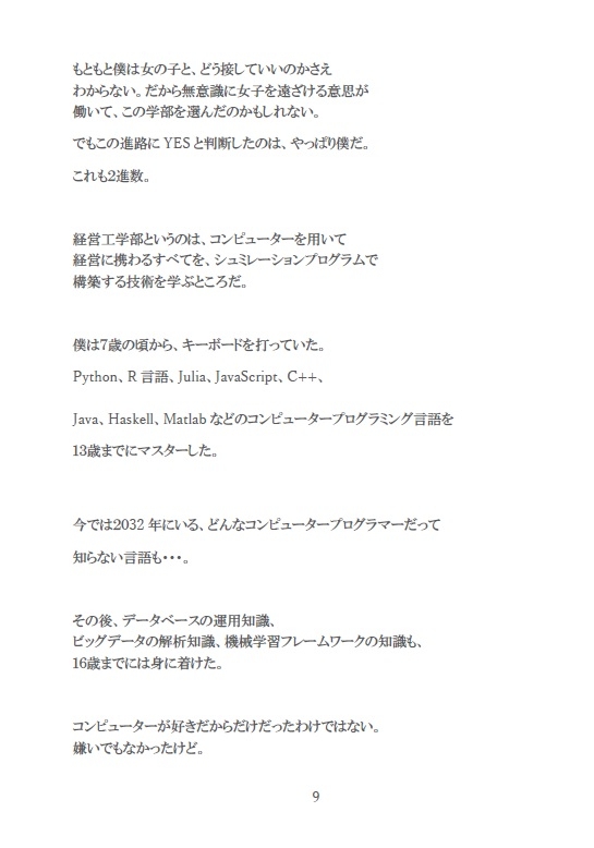 交際している彼女はおろか、友達もいない藤原 巧。彼はコンピュータープログラムの天才だった。