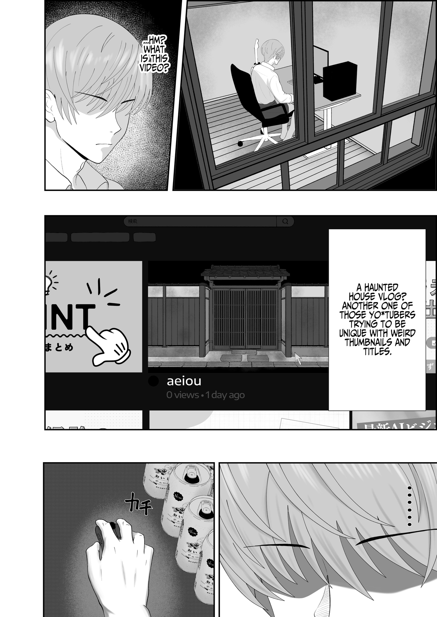 自室でY○uTubeを見ていた主人公。何気なく開いた心霊系動画は「視聴者から送られてきた映像」の紹介だった。映っていたのは、日本家屋の廃墟で、長髪の幽霊に犯される男性の主観映像。「フェイクか?」と興味と疑いが高まる中、気づけば主人公はその廃墟にいた。目の前にはブラウン管テレビ。そこには先ほどの映像が再生されている。そして現れる女。抵抗できず、恐怖の中で幽霊に犯される主人公。快楽が恐怖を侵食し、ついには自ら求めるように――。