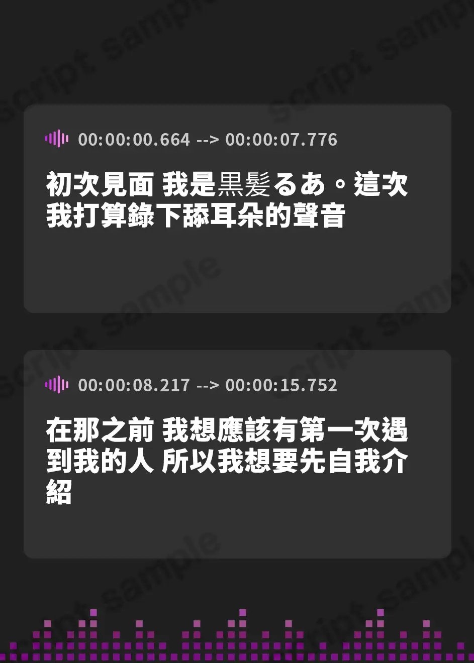 音に集中できるよう、自己紹介の後のトークは一切なし。癒しの耳舐め音をぜひお楽しみください。