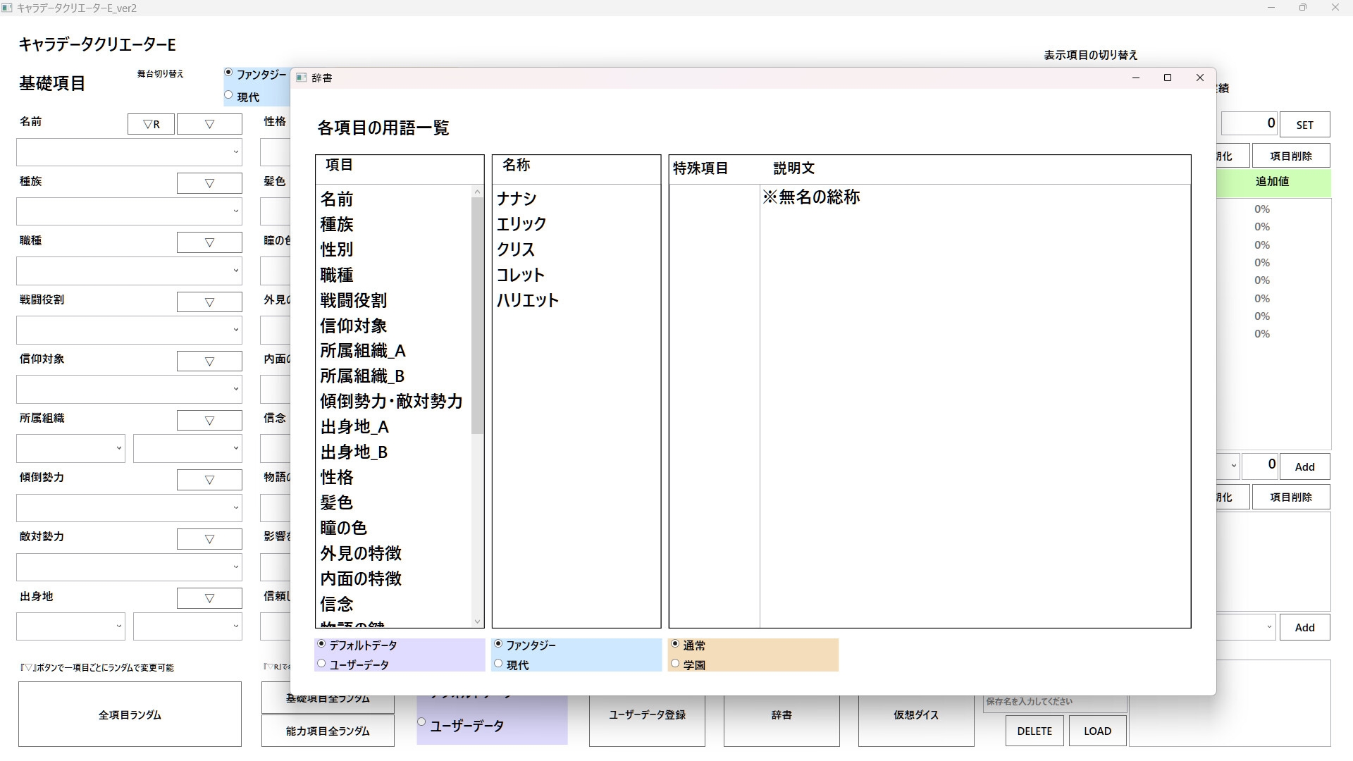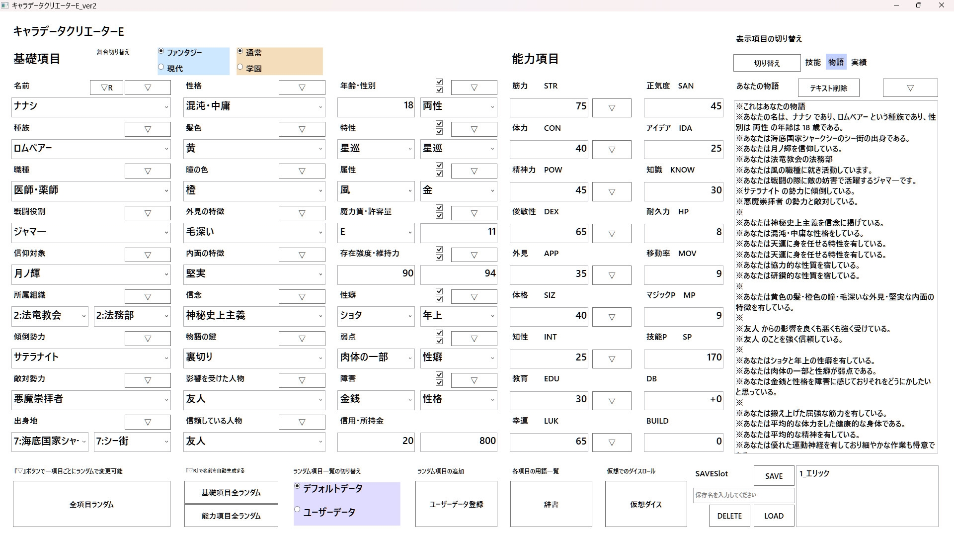 本作は、キャラクターのデータをランダムに生成できるツールです。