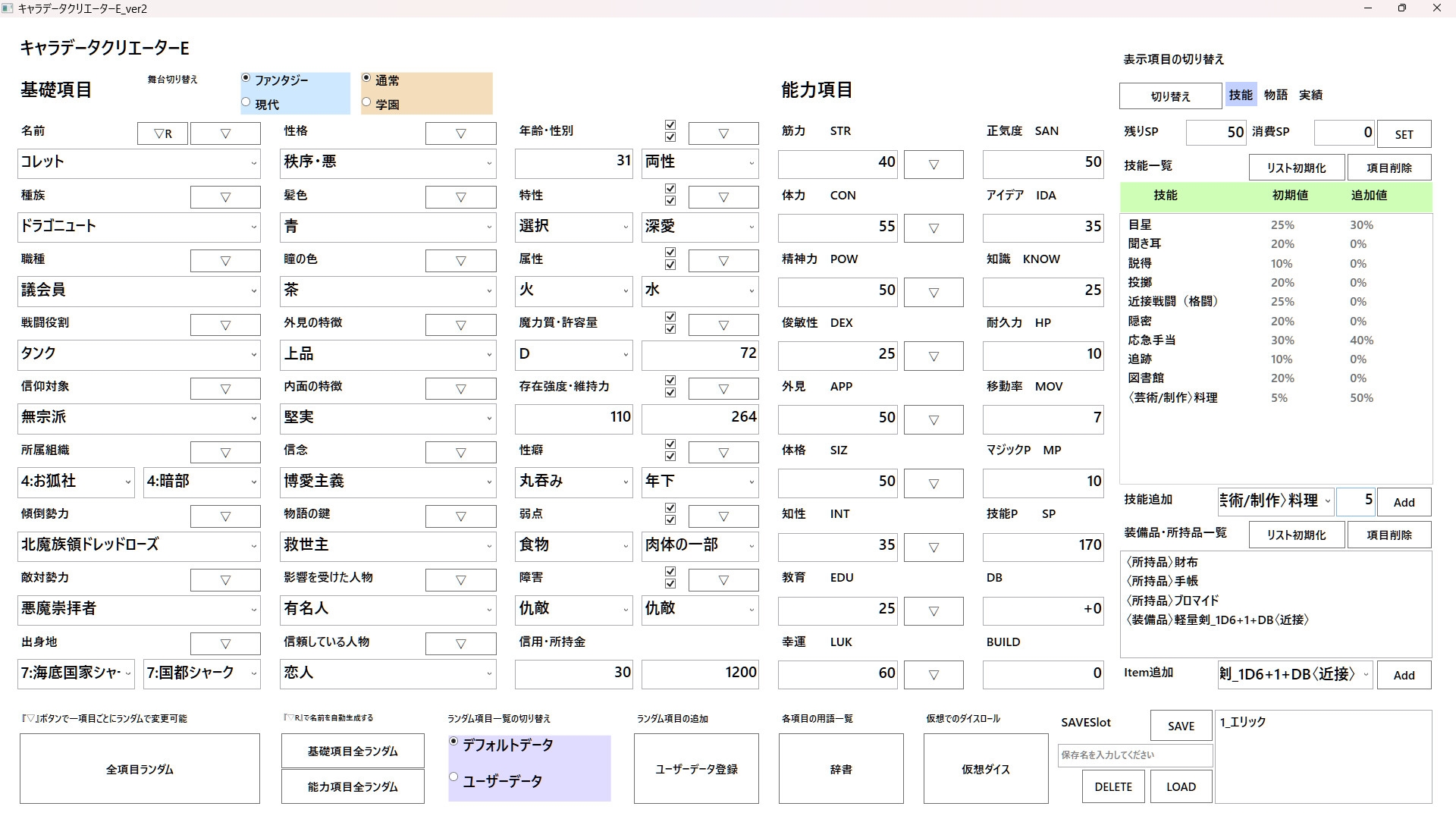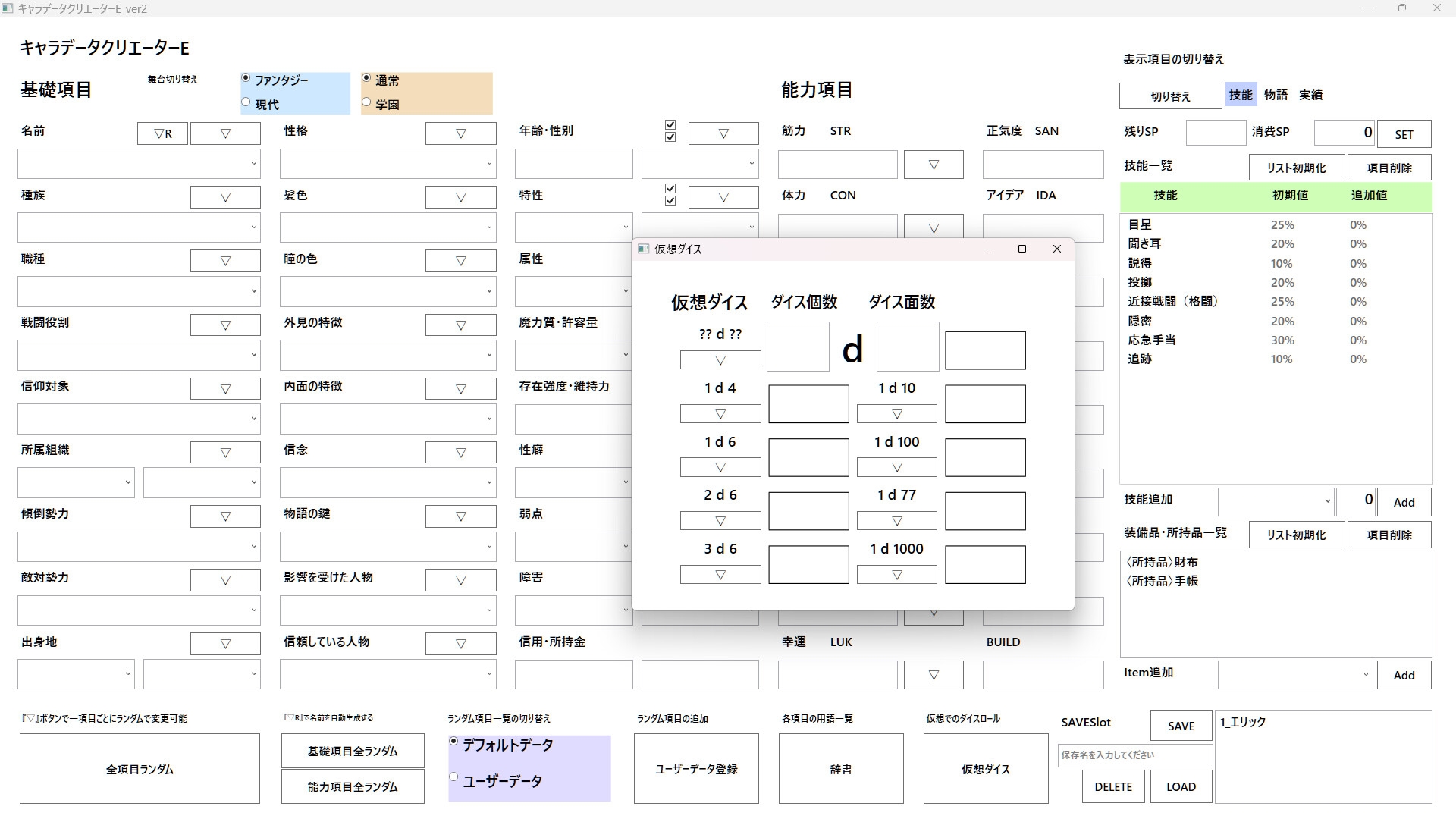 ver.2 から技能一覧機能や各種項目の辞書機能を追加しました。