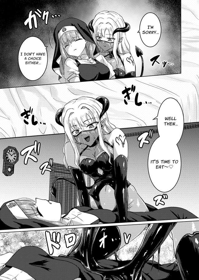 精気が枯渇して空腹のサキュバス・へザットは、治療院に勤めるシスター・ハンナに狙いを定める。