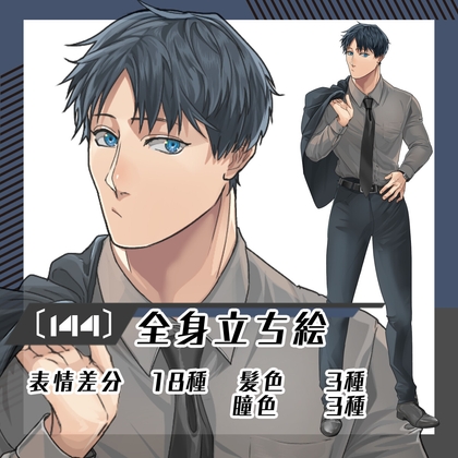 【立ち絵素材144】筋肉質なスーツ男性(全身・髪色差分あり)