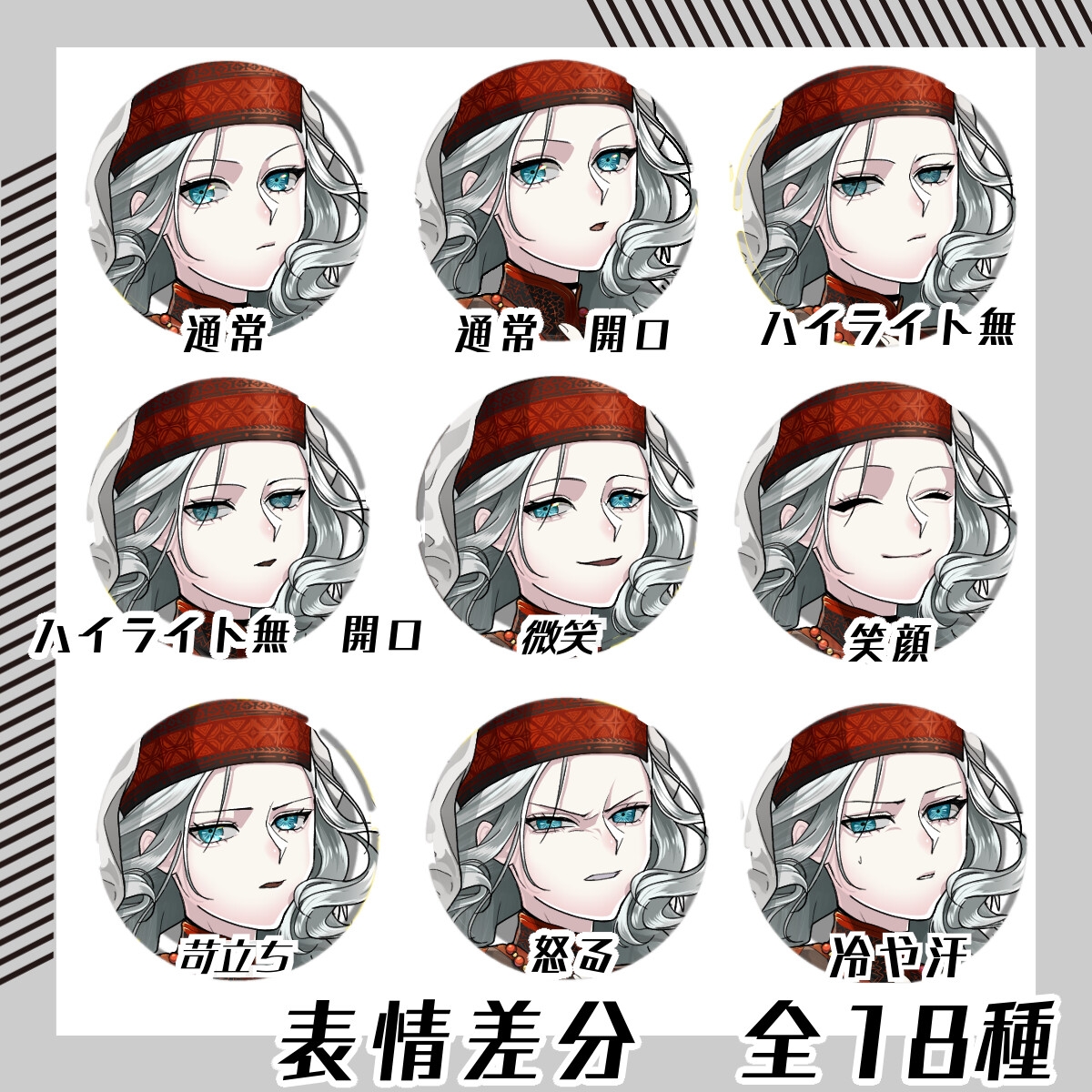9色の色差分すべてに18種の表情差分が付いています。
