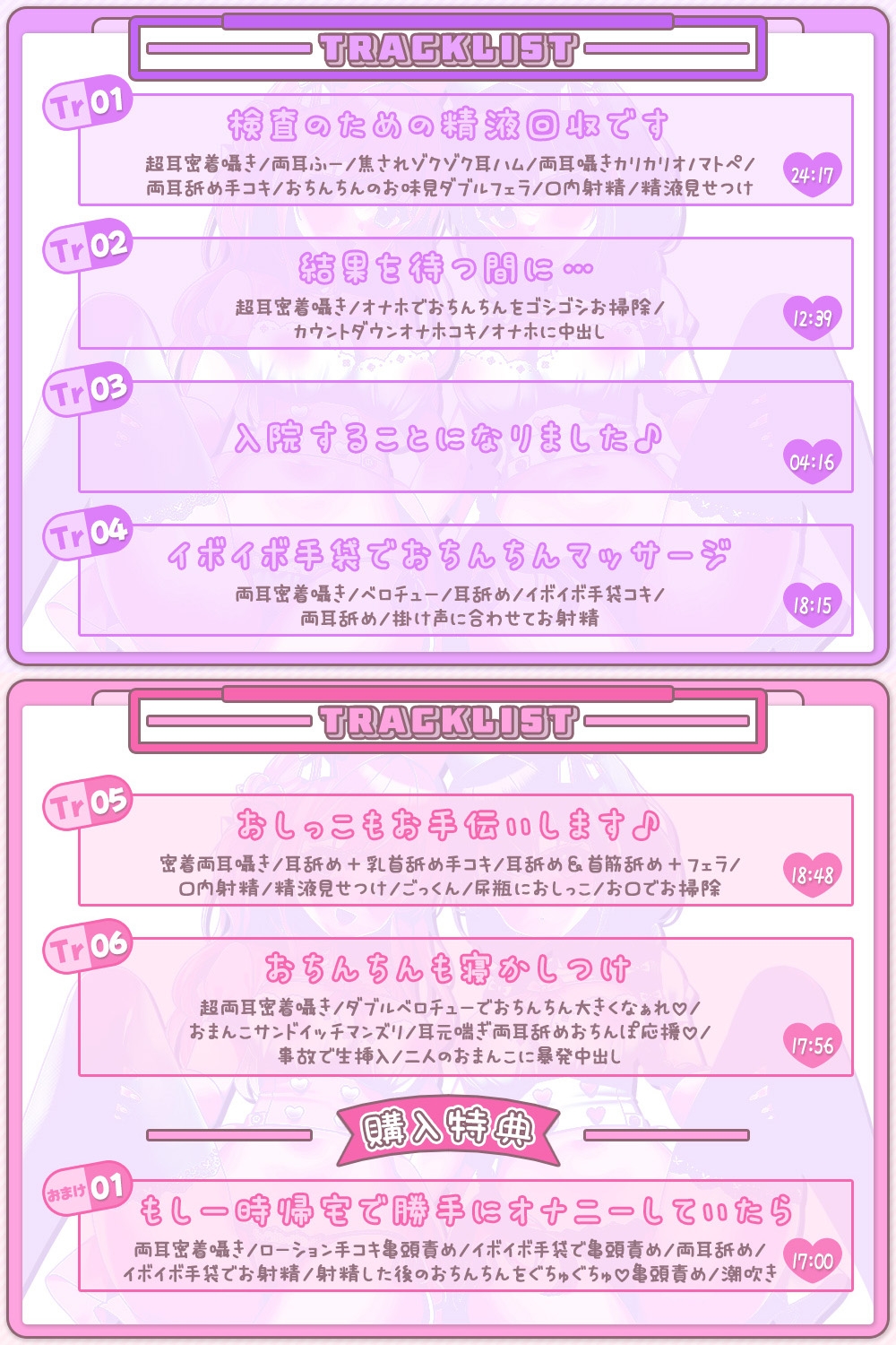 (両耳密着囁き/ベロチュー/耳舐め/イボイボ手袋コキ/両耳舐め/掛け声に合わせてお射精)