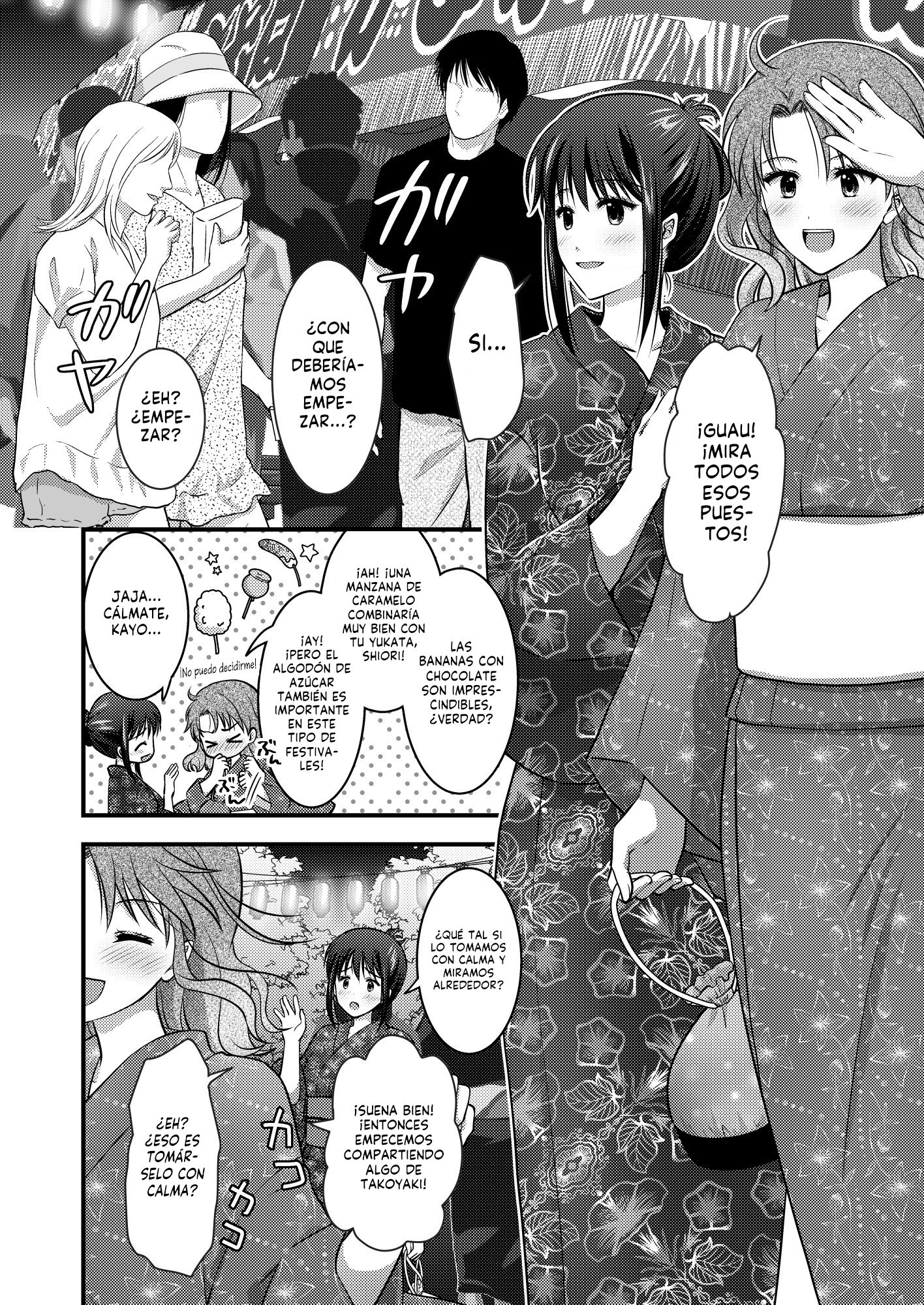夏祭り会場で華夜を待っている詩織に声を掛ける三人組の男。