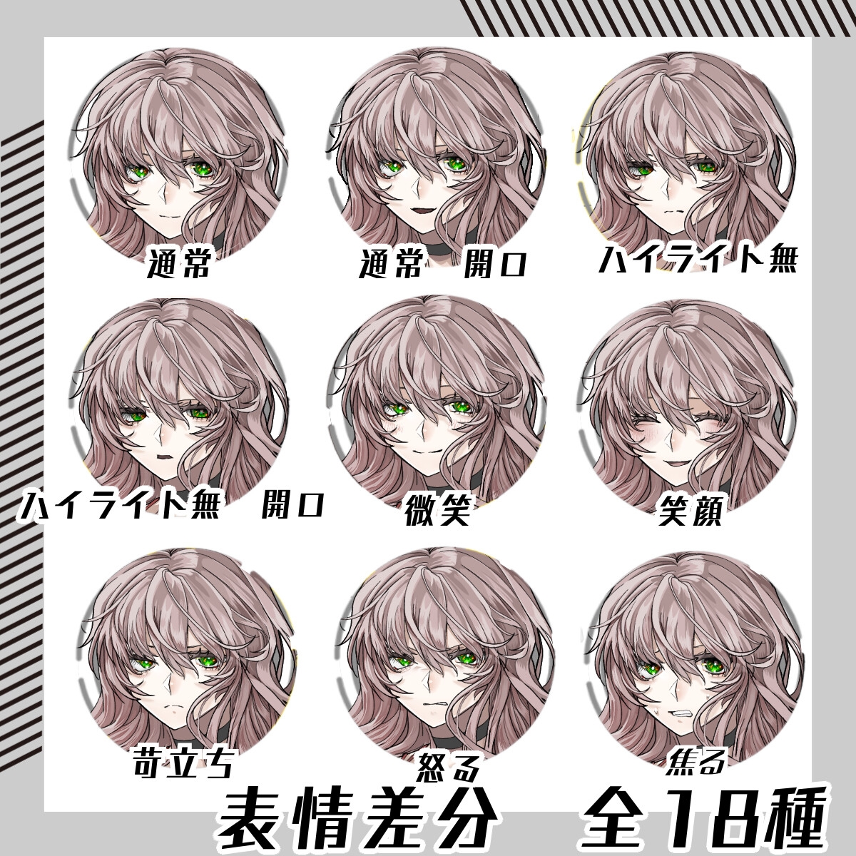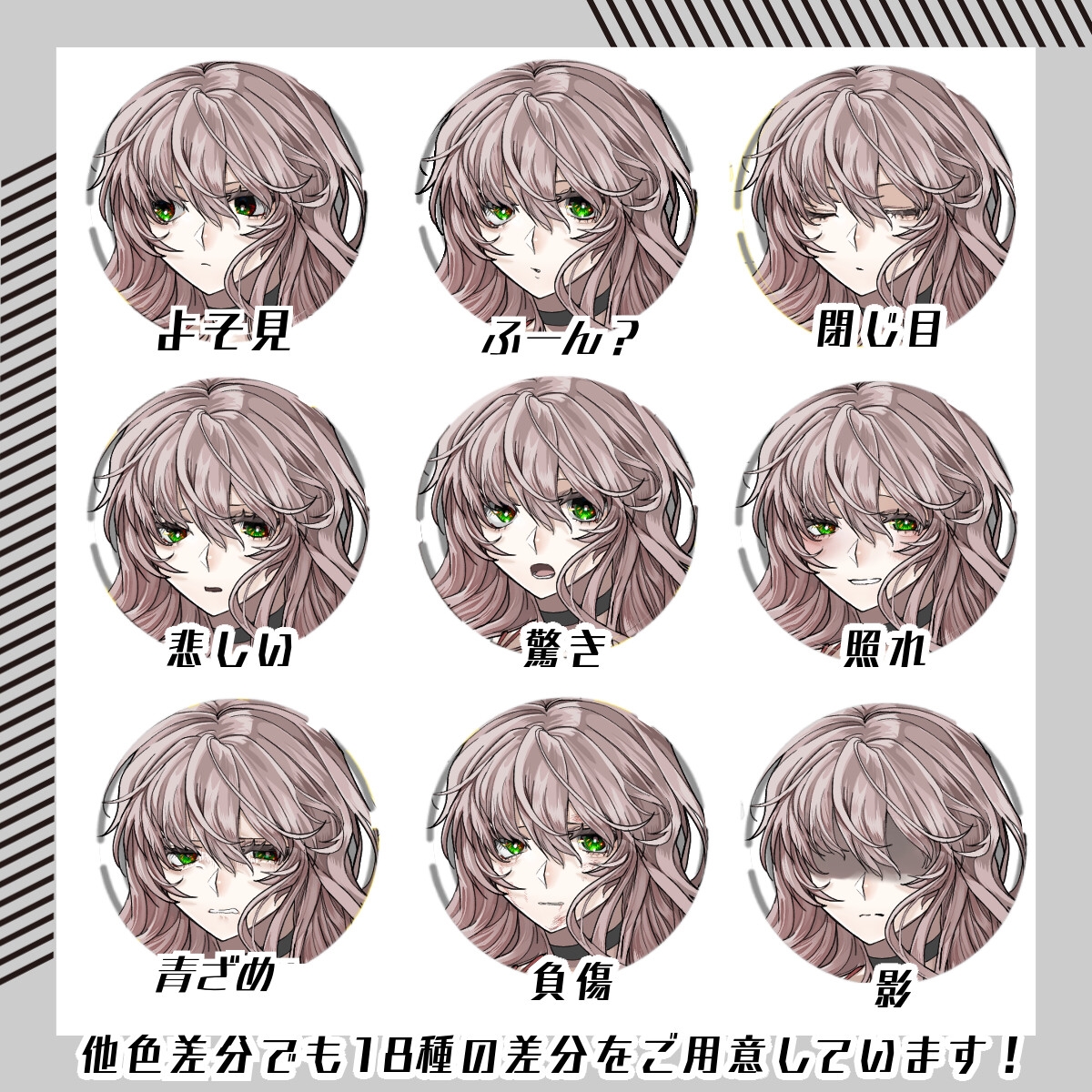 9色の色差分すべてに18種の表情差分が付いています。