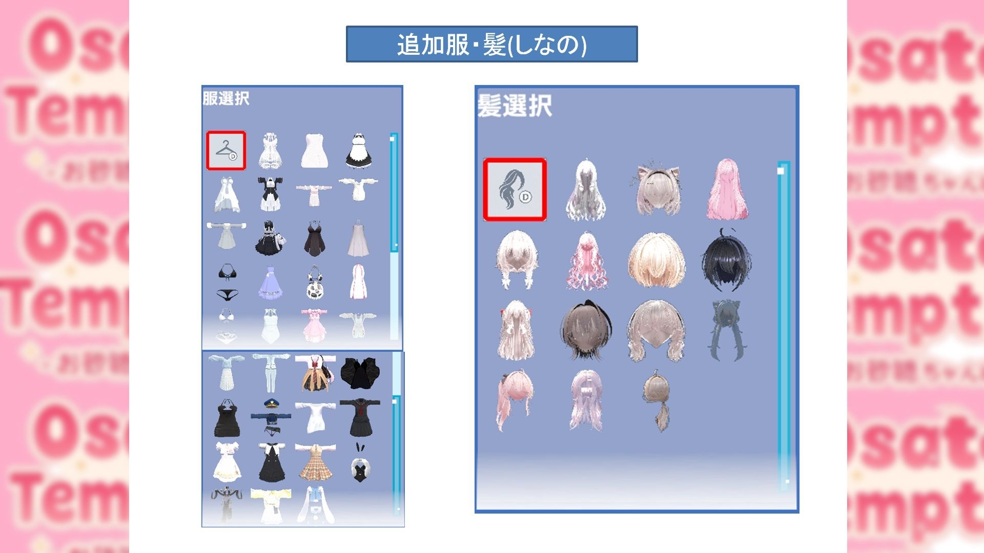 同じアバターでも異なる雰囲気を楽しめるため、カスタマイズの幅が大きく広がります。 - 追加した衣装・髪型は、本編の着せ替えモードや各種鑑賞モードでそのまま使用可能です。