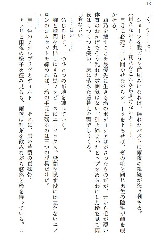朝来玲(あさく・れい)は、三年前になった行方不明の妹・莉乃(りの)が、性奴○となっていることを突き止めた。